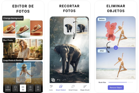 Le permite editar fotografías y eliminar detalles, así como eliminar o cambiar el fondo de estas imágenes. Cuando lo termines, tendrás opciones para descargar las fotos o publicarlas en las redes sociales.