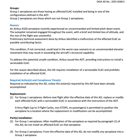 La aviación comercial no es el medio de transporte más seguro por casualidad, sino porque opera bajo un marco técnico y regulatorio muy estricto. En este contexto, instrumentos como la directiva de aeronavegabilidad de emergencia nos permiten reaccionar rápidamente cuando se identifica un posible riesgo, como ha ocurrido en este caso con el A320. Airbus, la Agencia Europea de Seguridad Aérea y las aerolíneas están implementando medidas preventivas mientras la flota continúa operando, en un equilibrio constante entre la continuidad del servicio y la mejora de la seguridad.