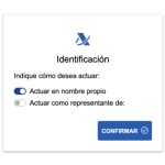 Después de iniciar sesión se mostrará una ventana donde tienes que indicar si estás actuando en nombre propio para obtener tus propios datos, que es la opción marcada por defecto. Simplemente tienes que pulsar en Confirmar, pero este es un paso que debes hacer para que quienes actúen en representación de otras personas puedan indicarlo.