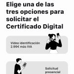 También puedes solicitar el certificado digital entrando en esta página de la FNMT. En ella, puedes elegir solicitarlo con videollamada de identificación, con tu DNI si tienes un lector en el PC, o por el móvil devolviéndote al proceso que te hemos dicho más arriba.