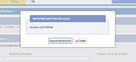 Si no vieras la opción, también puedes entrar directamente por este enlace. Y una vez dentro de la web, tienes que elegir crear una nueva declaración o cargar una ya creada. Si es la primera vez que usas el simulador, crea una nueva. El simulador te va a permitir luego guardar los borradores que generes en tu ordenador para cargarlos cuando quieras y retomar el trabajo.