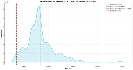 Y las versiones básicas de un coche están, en muchos casos y más en vehículos baratos como el Dacia Sandero, enfocadas a grandes flotas. Esto explica que si el coche se segmenta entre personas físicas y jurídicas, la curva se desplaza hacia la derecha.