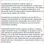 «Consideramos prioritario avanzar hacia una relación internacional equilibrada y respetuosa entre EE.UU. y Venezuela, y entre Venezuela y los países de la región»