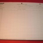 Para programar, no te sentabas frente a esa máquina electromecánica y empezabas a escribir comandos sin parar. En cambio, el programa fue escrito a mano o mecanografiado. IBM había preparado plantillas que permitían no perderse y evitar exceder el número de caracteres por línea.