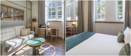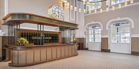 Esa intención de preservar la identidad del edificio se trasladó directamente al interior. El diseño del hotel busca evocar la década de 1920 a través de materiales, colores y detalles decorativos, manteniendo constantes referencias al pasado ferroviario del lugar. Elementos como la maderael latón o los tejidos más ricos conviven con una atmósfera que recuerda a esa época, mientras que antiguos espacios de tránsito se han reconvertido en zonas del hotel, como la recepción. Todo está pensado para que la historia no quede sólo en las paredes, sino que sea parte de la experiencia de quien allí se aloje.