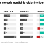 De acuerdo a Estimación de CounterPoint Research para el mercado mundial de relojes inteligentes en 2025…