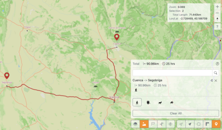Pero más allá de satisfacer nuestra curiosidad, algo que podemos hacer con este mapa es… jugar. el equipo tiene incluido una función que aún se encuentra en estado beta y que permite explorar el tiempo que tardaron estas rutas. Para ello, tenemos que seleccionar entre varios puntos y seleccionar entre cuatro modos de transporte terrestre: