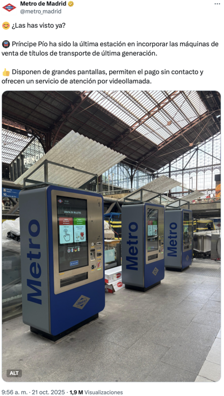 Equipos que, en el caso de estas máquinas, se desplegarán en 19 estaciones. Los primeros, presumió la cuenta de X del Metro de MadridLlegaron esta misma semana.