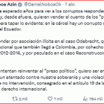También el presidente de Ecuador y muy cercano a Donald Trump, presidente de Estados Unidos, escribió «Hoy, desde afuera, quieren vender la historia de los ‘presos políticos’ para tapar lo obvio».