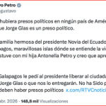 Quito envió nota oficial de protesta tras el presidente Gustavo Petro Dijo que Jorge Glas es un “preso político”.