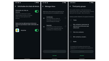 WhatsApp te permitirá entonces elegir si quieres Los mensajes con otras aplicaciones aparecen separados. o se combinan con las internas, para que puedas tener dos ventanas o solo una. Además, también podrás configurar quién puede agregarte a los grupos creados en otras apps con las que tengas conectado WhatsApp.