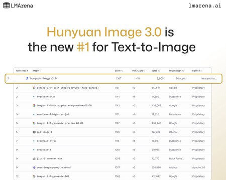 Imagen de Hunyuan 3.0. Este es el nombre del nuevo modelo Tencent, que en el Clasificación de Lmarena De los modelos más poderosos para la generación de imágenes del texto, ha logrado superar la vista previa de la imagen Flash Gemini 2.5 (popularmente conocida como nano plátano), además de otros modelos patentados como GPT-Image-1, Flux-1-Kontext-Max o QWen-iMage.